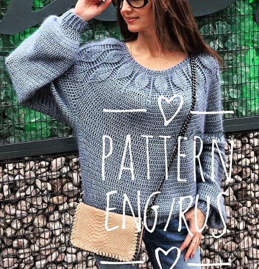 Уровень средний, для тех, кто уже умеет вязать крючком, и хочет связать именно эту модель свитера.