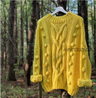 Описание свитера шишечками содержит: - схему узоров в формате всей выкройки свитера - рекомендации по пряже, плотности вязания, спицам - pdf-файл доступен для печати