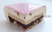 Это современный десерт, состоящий из нежного мусса, фруктово-ягодной начинки и тонкого слоя бисквита (дополнительно в торте могут присутствовать хрустящий слой, крем, карамель, орехи и тд). Это как мороженое, которое держит форму и не тает, при этом требует обязательного хранения в холодильнике!
