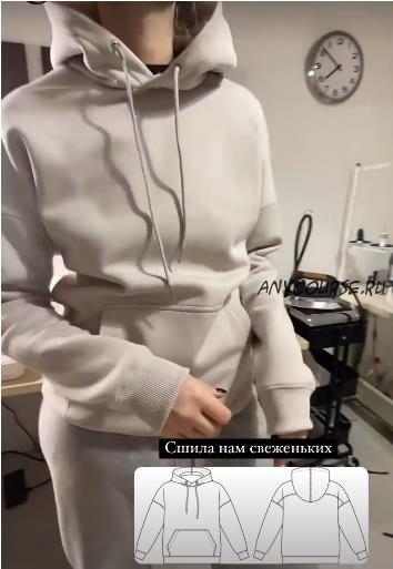 ? Выкройка ультрасовременного джемпера-худи прямого силуэта, слегка зауженного к низу, большого объема, с капюшоном на кулиске. Модель имеет спущенное плечо, рукава с манжетами, низ изделия оформлен притачным поясом.
