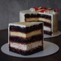 Шифоновые шоколадно-кофейные коржи, сливочно-кокосовая прослойка, апельсиновое кремю,