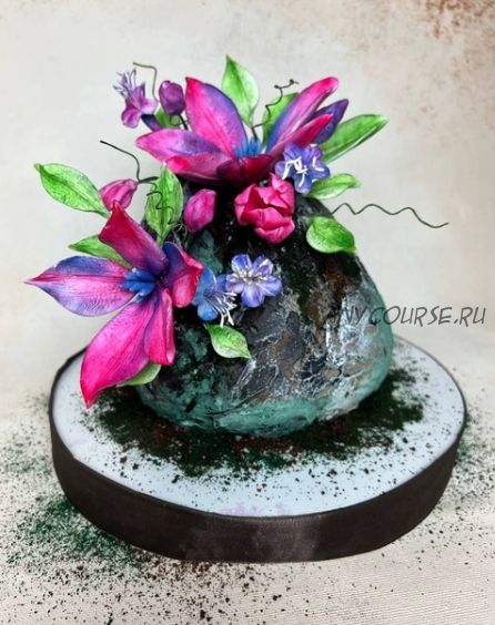 ?Декор: покрытие ганаш и цветочная композиция из мастики.