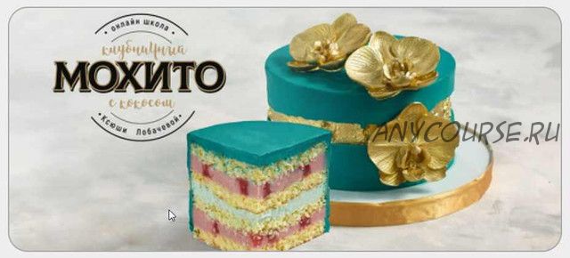 Миндально-кокосовый бисквит, клубничная начинка на 2х видах шоколада, клубничный соус и мятный крем. Декор из орхидей, двухслойное выравнивание с декорированием середины.