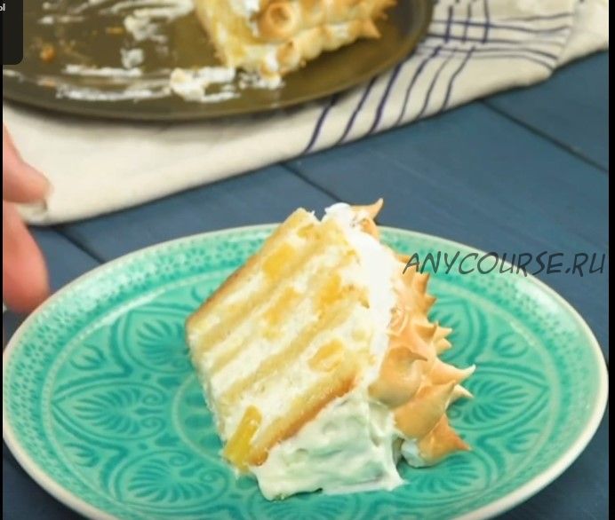 Вы получите: видео-урок с рецептом и пошаговым описанием приготовления торта'Пина-колада' Описание изделия: Торт 'Пина-колада' с кокосовым бисквитом, ананасовым компоте и хрустяшкой