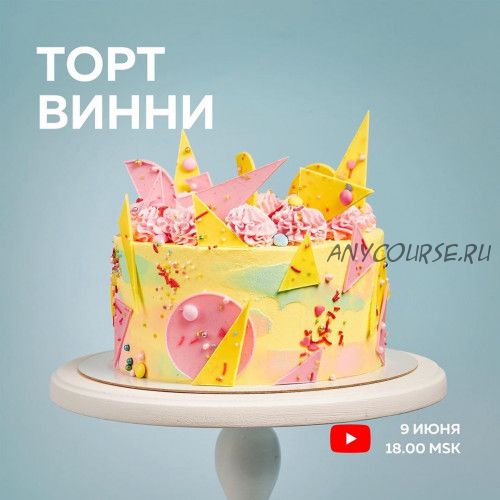Винни - воздушные цитрусовые коржи, клубничная пропитка, банановая карамель, кусочки банана и свежей клубники, сметанный сливочный крем, сырный крем в покрытии и яркий декор из шоколадной глазури?