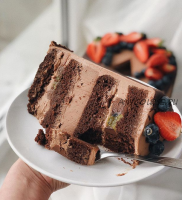 Тотально шоколадный торт с курдом лайм-мята, запечённый чизкейком на горьком шоколаде,
