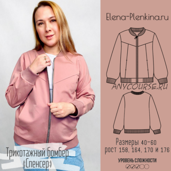 Трикотажный бомбер Спенсер, размеры 40-60 , рост 164 (Елена Пленкина)