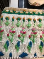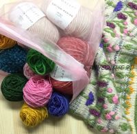 Снуд двусторонний. Потребуется пряжа для основного полотна (метраж 100м/50г, всего около 120 г) и цветные нити для цветочных элементов. Потребуются также спицы 4 - 4.5 мм круговые на леске 50-60 см, и крючок 2.5 - 3 мм, маркеры.