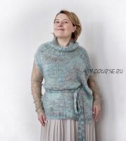 Модель выполняется сверху вниз, силуэт плечо-погон, плечи разной длины. Фиксируется на завязках на талии. Без боковых швов.