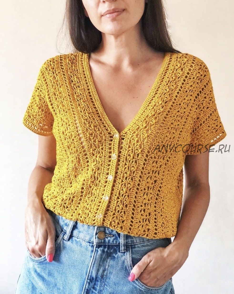Топ связан из Seam «Lambada fine» 170 м/ 50г, состав 55% Мерсеризованный хлопок, 45% вискозы.