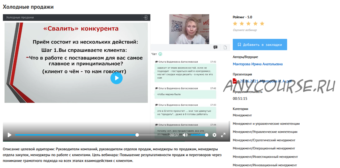 - [УИПКиП] Вебинар 'Холодные продажи' (Ирина Манторова)