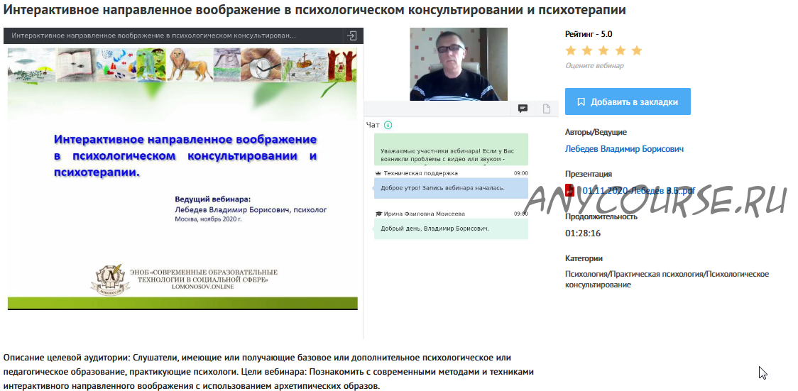 [УИПКиП] Вебинар 'Интерактивное направленное воображение в психологическом консультировании и психотерапии' (Владимир Лебедев)
