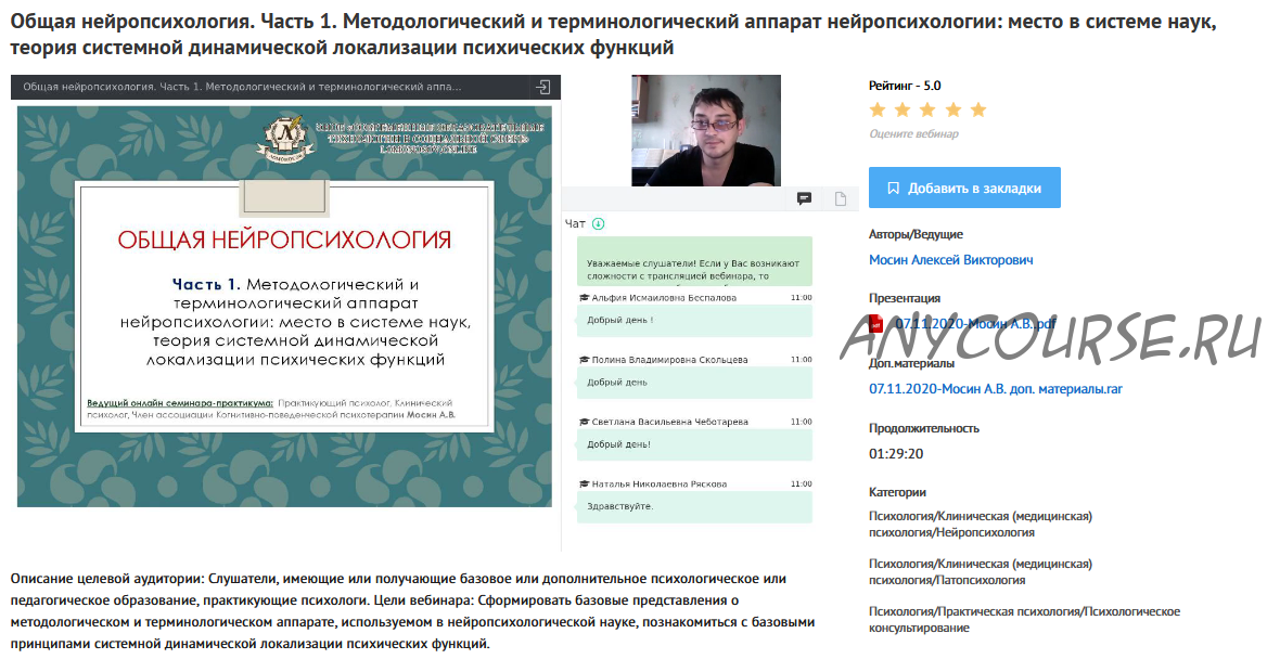 - [УИПКиП] Вебинары 'Общая нейропсихология' (Алексей Мосин)