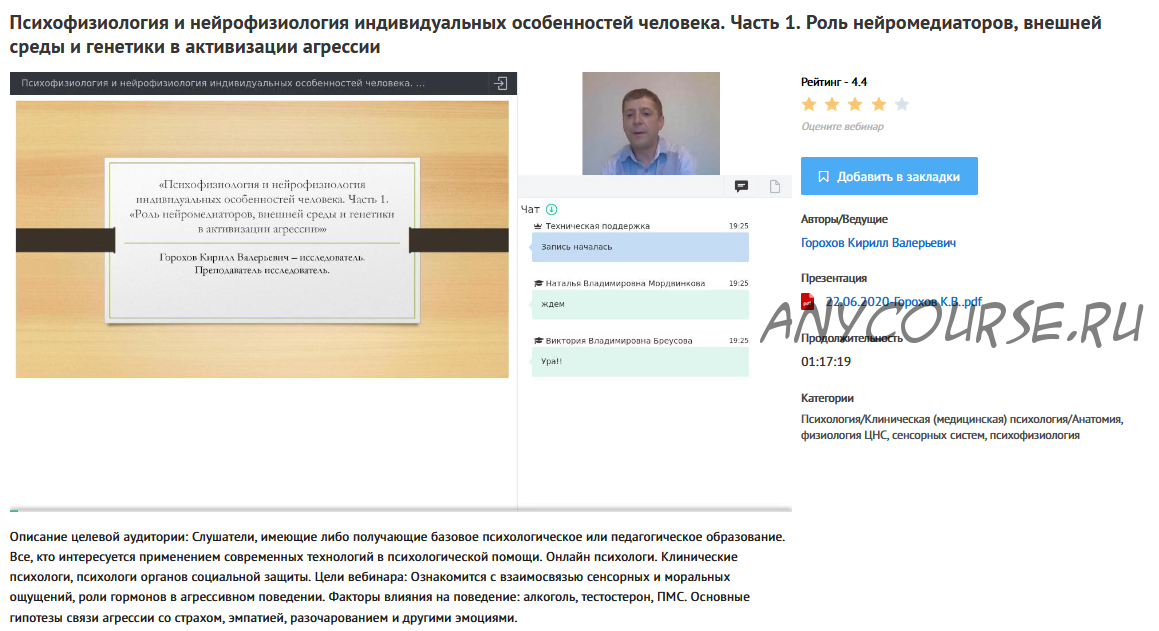 - [УИПКиП] Вебинары 'Психофизиология и нейрофизиология индивидуальных особенностей человека' (Кирилл Горохов)
