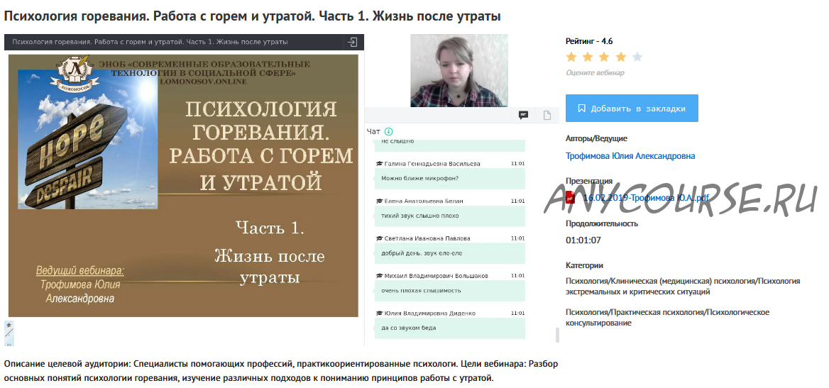 Часть 2. Особенности работы с темой горя у взрослых и детей (1ч 25м)