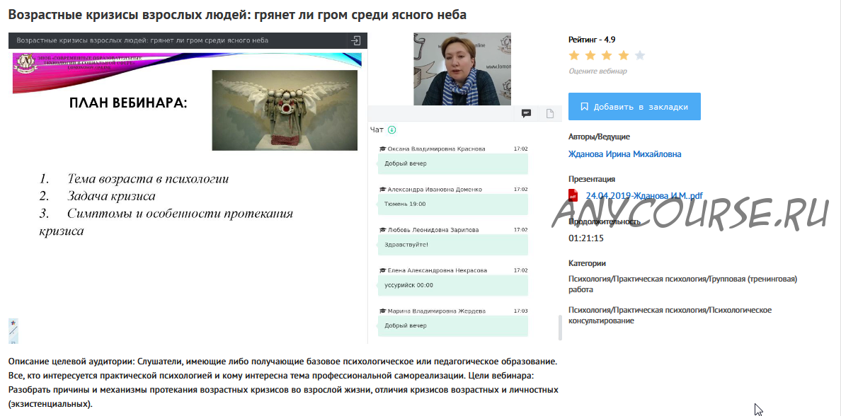 - [УИПКиП] Вебинары 'Возрастные кризисы взрослых людей' (Ирина Жданова)