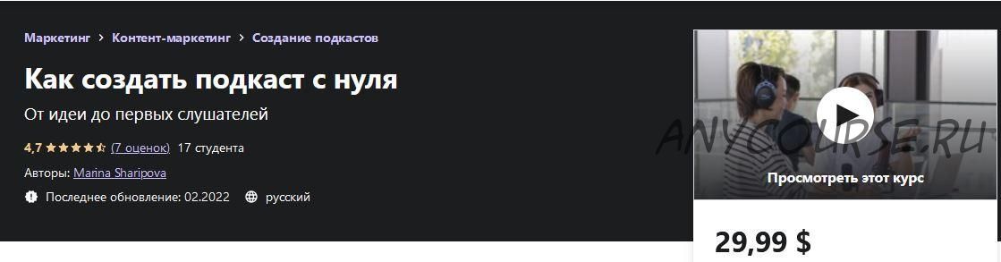 [Udemy] Как создать подкаст с нуля (Марина Шарипова)