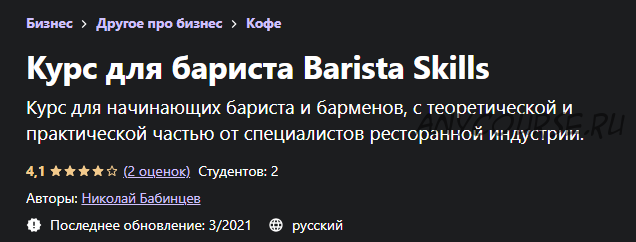 [Udemy] Курс для бариста Barista Skills (Николай Бабинцев)