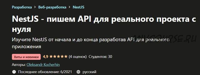 [Udemy] NestJS - пишем API для реального проекта с нуля (Oleksandr Kocherhin)