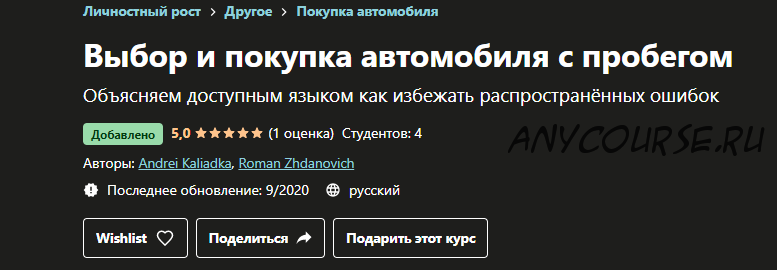 [Udemy] Выбор и покупка автомобиля с пробегом (Andrei Kaliadka)