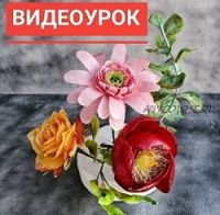 • Пион - окрашивание в яркий интенсивный цвет, придание лепесткам гибкости и сферической формы, изготовление листьев, каркасная сборка