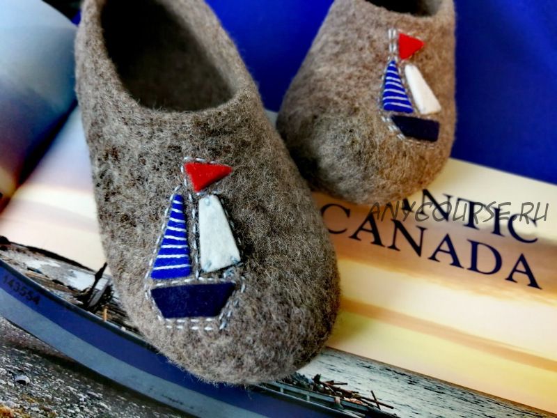 - мастер-класс (в котором серия видео-курсов 1 час 40 минут + отдельный видео блок по вышивке и аппликации 16 минут), по валянию теплых и удобных домашних тапочек для деток от полутора лет и старше