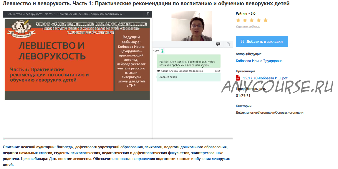 Часть 1: Практические рекомендации по воспитанию и обучению леворуких детей 1ч 25м