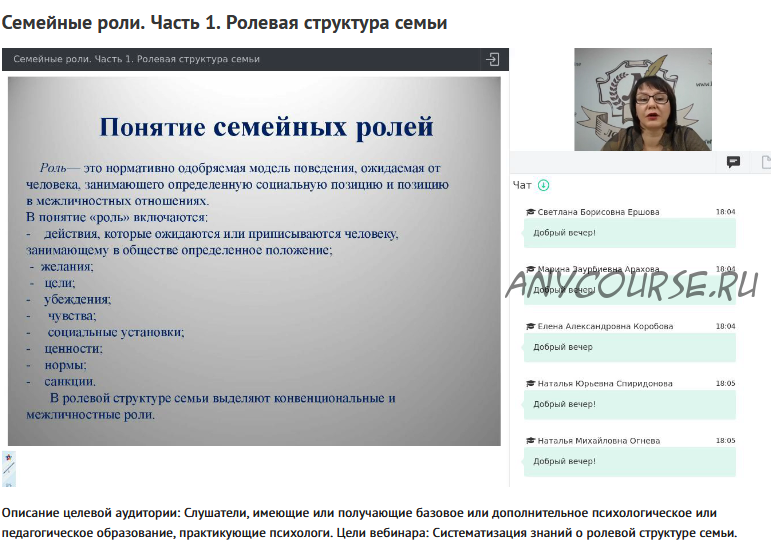 Вебинары 'Семейные роли' (Наталья Русакова)