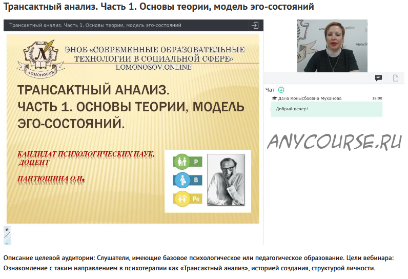 Вебинары 'Транзактрый анализ' (Ольга Пантюшина)