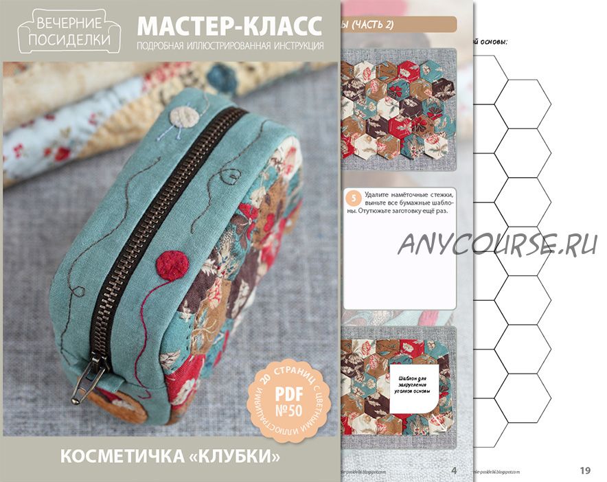 • Стенкам косметички хоть в этот раз и досталась второстепенная роль, но отыгрывают они её на сто процентов: тридцать семь сшитых и простёганных вручную шестиугольников