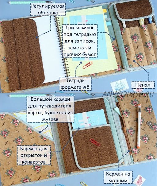 Супер-обложка для путешествий, обложка-органайзер, которая помимо тетради организует ручки-карандаши и много-много чего. Без тетради в отпуске никак, и она всегда с собой. А помимо тетради путешествие всегда обрастает кучей всяких бумажек.