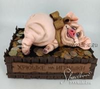В моем варианте Хрюшка наслаждается жизнью на копилке с секретом: чтобы бросить монетку, Хрюка нужно повернуть, и это очень забавляет детей!