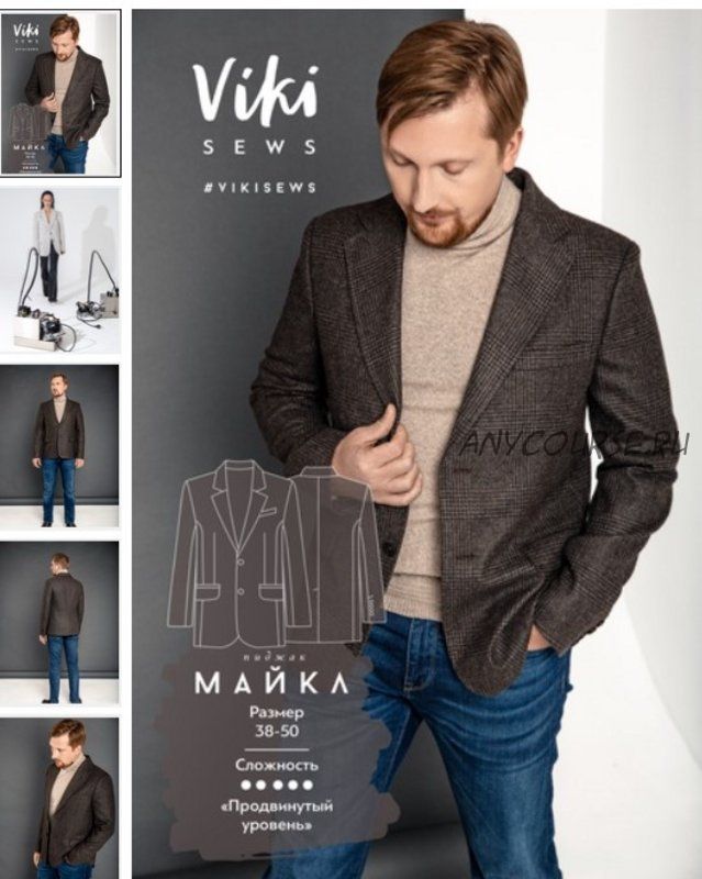 Мужской однобортный пиджак плотного прилегания, малого объема на подкладке, длина приблизительно до уровня линии бедер. Конструктивно изделие решено за счет линий отрезного бочка, среднего шва спинки, вытачки, переведенной в линию кармана. На полочке выполнены боковые прорезные карманы в рамку с клапанами. На левой полочке нагрудный карман с настрочной листочкой. Застежка на обметанные петли и пуговицы. В среднем шве спинки шлица. Воротник пиджачного типа на отрезной стойке. Втачной рукав плотного прилегания, низ рукава обработан открытой шлицей. На подкладке выполнены внутренние нагрудные карманы.