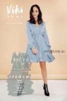 Платье полуприлегающего силуэта, отрезное по линии талии. V-образный вырез. Присборка по верхнему срезу полочки спрятана в двойной кокетке. По среднему шву полочки декоративная застежка с руликовыми петлями. Длинный втачной рукав, по низу в кулиску вставлена резинка. По линии талии кулиска с тремя рядами резинки. Юбка полусолнце. Лиф платья и юбка на подкладке.