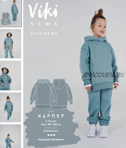 Выкройка худи большого объема прямого силуэта, с капюшоном. Капюшон обработан подкладкой, один край расположен внахлёст относительно другого. Деталь переда имеет вертикальные фигурные подрезы, содержащие карманы в швах. Линия плеча спущенная. Рукав рубашечного покроя, содержит два декоративных шва. Манжеты и пояс выполнены из кашкорсе. По швам рукава, плечевому шву, верхней части оката рукава проложены декоративные отстрочки. Длина худи ниже линии бедер.