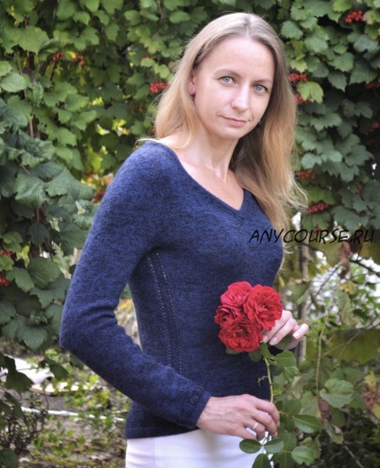 «Вишенка_V_погонах» получила свое название благодаря узору по центру спинки. Узор встроен в схемы вязания, его раппорт состоит из 41 петли и 24 рядов. По своему желанию Вы можете связать изделие полностью лицевой гладью или заменить его другим узором, который не влияет на плотность вязания.