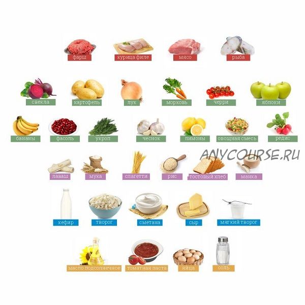Набор продуктов, который мы использовали в меню, изображен на картинке.