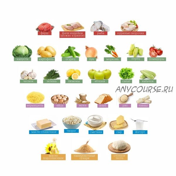 Набор продуктов, который мы использовали в меню, изображен на картинке.