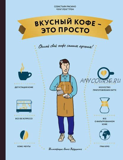 Книга от известных французских бариста – подробное и простое руководство по покупке, обжарке, приготовлению, подаче и дегустации кофе. Это полный авторских иллюстраций и инфографики информативный и веселый учебник, который представляет совершенно новый способ узнать много нового о своем любимом напитке.