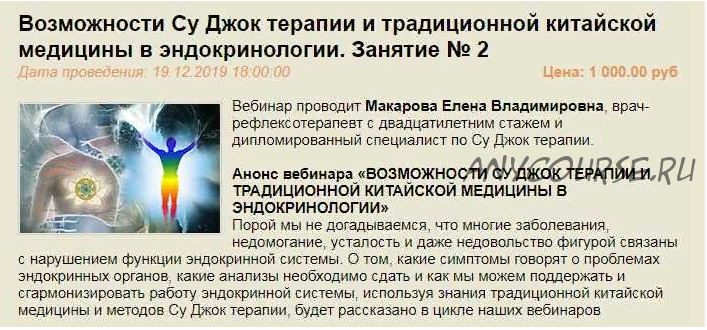 - Возможности Су Джок терапии и китайской медицины в эндокринологии, занятие № 2 (Елена Макарова )