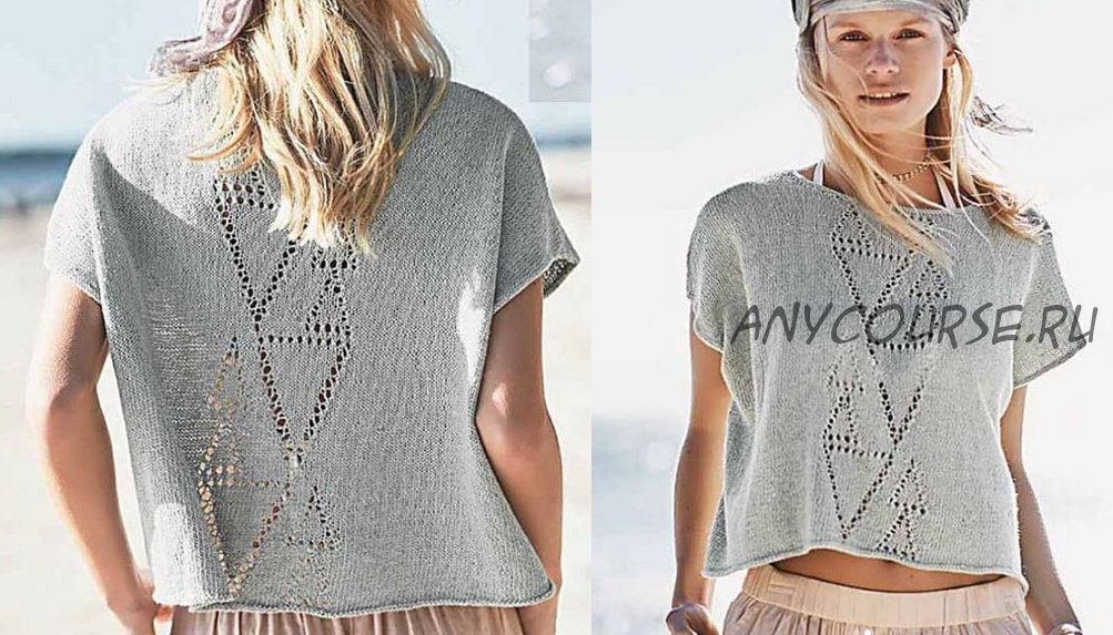 Красивый и оригинальный топ с ажурными треуголниками разной величины несомненно привлечет к себе внимание и будет комфортным в жаркое лето.
