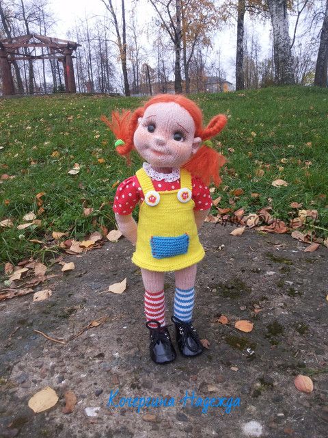 В МК входит пошаговое описание изготовления Пеппи и Мк изготовления для нее одежды в подарок! Куколка на большом скелете для кукол, принимает любые положения. Рост 40 см. Описание обезьянки в МК не входит!!!