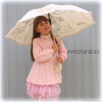 Кардиган для девочки с аранами, клешением от талии и пышными рукавами.