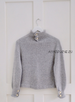 ? Удивительно нежный и женственный вязаный свитер Augustine с высоким воротом выполняется сверху вниз. У него креативная форма плеч и рукавов, а также уникальная оборка с пуговицами на вырезе горловины и манжетах. Сначала вяжется вырез горловины, а затем формируется остальная часть свитера. Петли поднимаются для оборки на вырезе горловины и на манжетах.