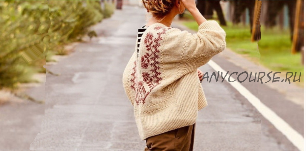 [Вяжи.ру] Джемпер оверсайз с элегантным жаккардом (Дзюнко Окамото)
