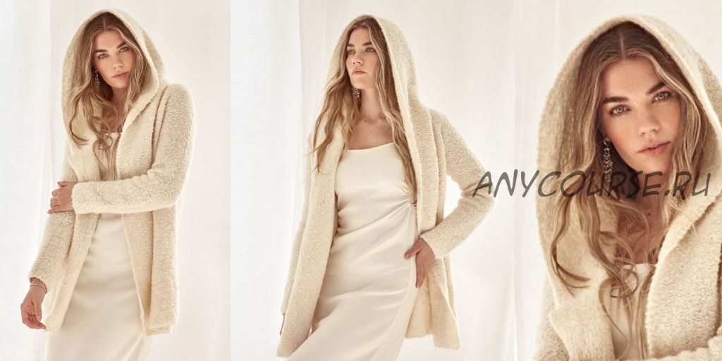 Уютный милый женский кардиган с капюшоном от английского дизайнера Ким Харгривз из книги Divine, вязаный спицами из мягкой буклированной пряжи.