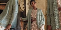 Бристол Иви всегда ищет новые формы и подходы, разрушая стереотипы и отходя от правил вязания, особенно ее дизайны выделяются сменой направления узора, как в этом случае, например, смещенные косы на полочках, которые стали украшением модного свободного кардигана.