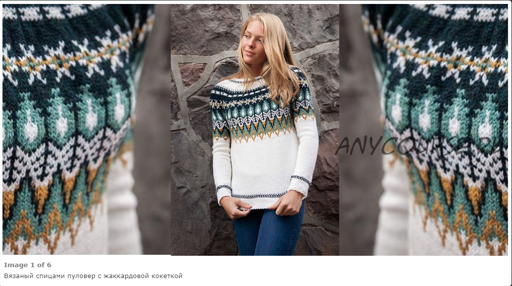 Пуловер вяжется круговыми рядами снизу вверх. Рукава вяжутся снизу вверх и присоединяются к корпусу, образуя кокетку. Жаккардовая часть пуловера полностью отображена в схеме.