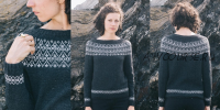 Пуловер вяжется по кругу спицами снизу вверх. Сначала вяжется тело, затем рукава, потом все детали соединяются для вязания круговой кокетки.