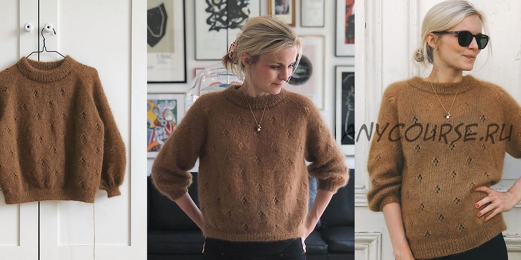 Пуловер вяжется без швов сверху вниз с прибавлениями для реглана на кокетке. Рукава имеют длину три четверти. Пуловер вяжется лицевой гладью с ажурными фрагментами.